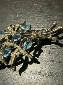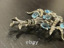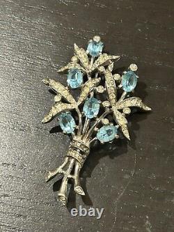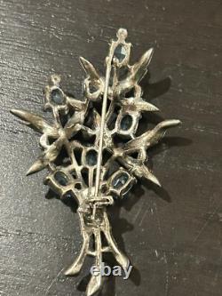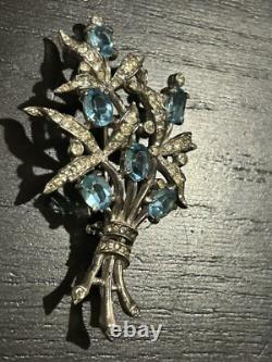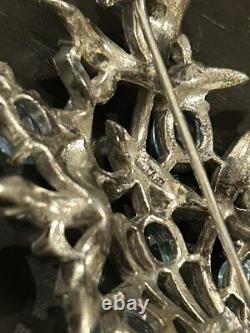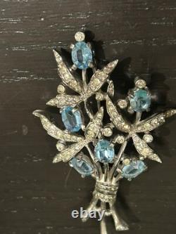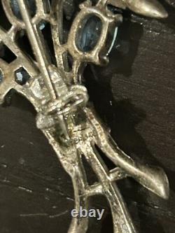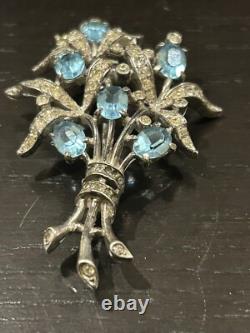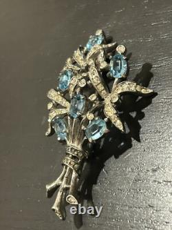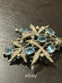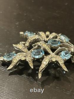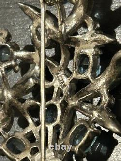 Vintage Trifari Sterling Silver Ice Blue And Clear Rhinestone Flower Brooch Pin