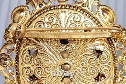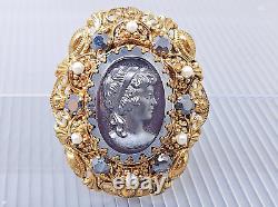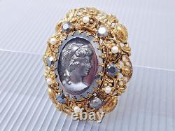 Vintage W. Germany Lady Face Cameo Rhinestone Oval Gold tone Brooch