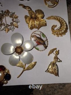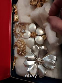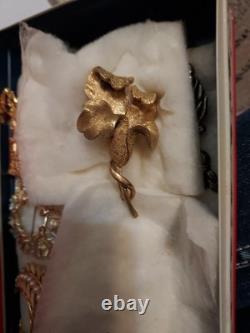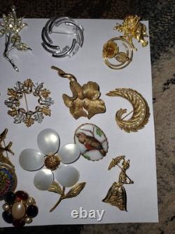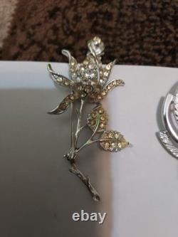 The vintage women's flower rhinestone silver gold brooch pins set of 20 features a beautiful design with a floral shape and gold color. Made with a gold base metal, these brooch pins are adorned with sparkling gold rhinestones, adding a touch of elegance to any outfit. Perfect for adding a vintage touch to your wardrobe, these brooch pins are a versatile accessory that can be worn on collars, lapels, or even as a statement piece on a bag or belt.