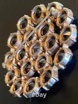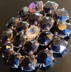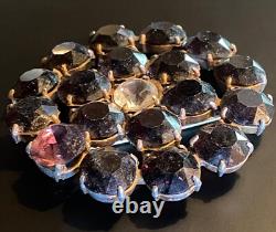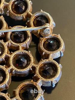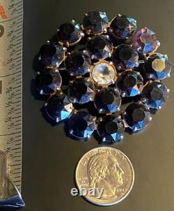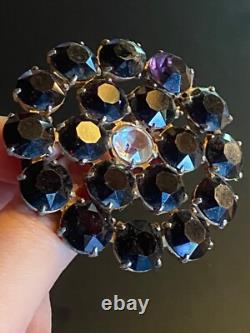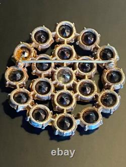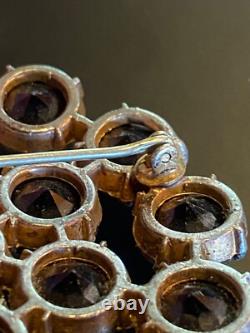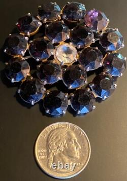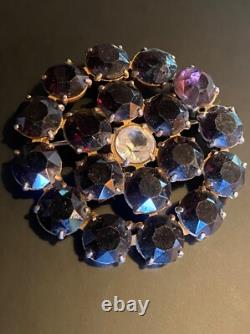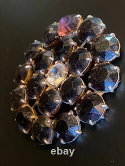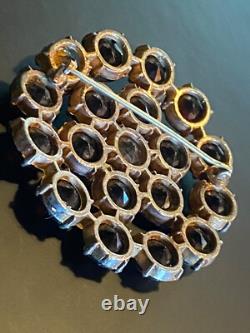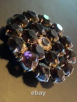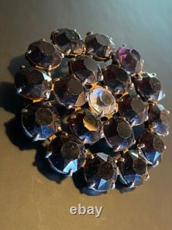 Vtg/antique 2.25 Gold Tone Blood Red Purple Rhinestone Round Floral Brooch