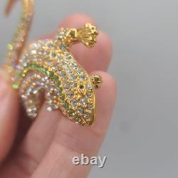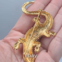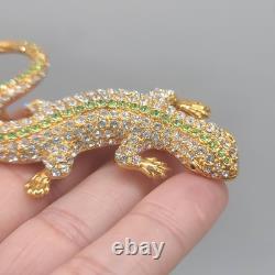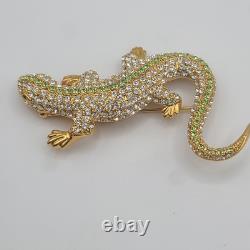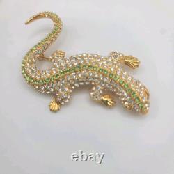 Vtg Camrose Kross JBK Lizard Brooch Green Rhinestone Pin Signed