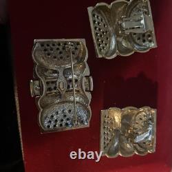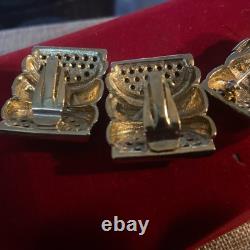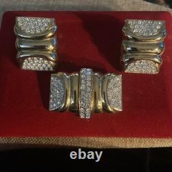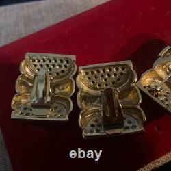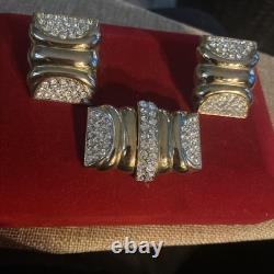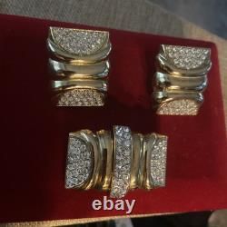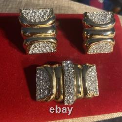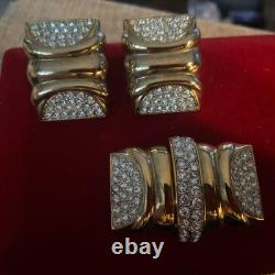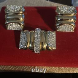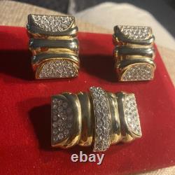 Perfect for a variety of special occasions, from weddings to anniversaries, or even as a thoughtful gift for Mother's Day, this set will add a touch of sophistication to any ensemble. Crafted in the United States, this original set exudes a charm that has withstood the test of time. The round, clear rhinestones provide a delicate contrast to the warm gold hues, making it a versatile addition to both day and night attire. The signature of the brand assures its authenticity, and the meticulous design ensures it will remain a cherished addition to your collection for years to come.