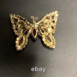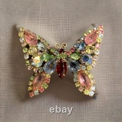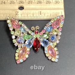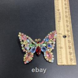 VTG Weiss Gold Tone Signed Vintage Butterfly Multi Color Rhinestones Brooch PIN